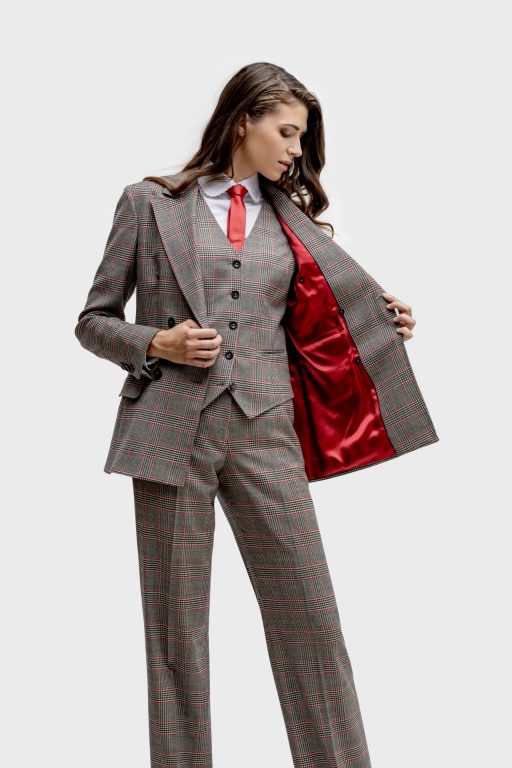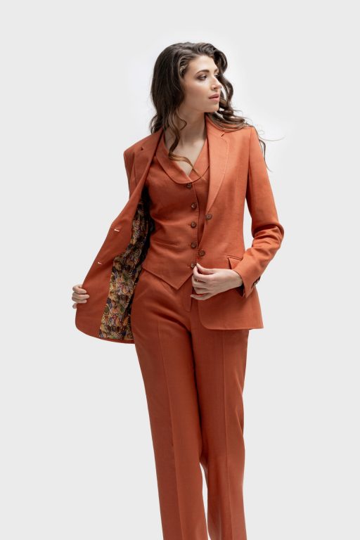 Damen Maßkonfektion von MANGAS: Entweder einzeln getragen, als Hosenanzug und Damenkostüm oder mit Maßrock kann der Dreiteiler für jede Gelegenheit passend kombiniert werden. Sowohl für die stilsichere und moderne Geschäftsfrau im Büroalltag, als auch für den lässigen Smart Casual Anlass.