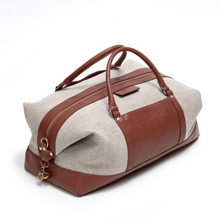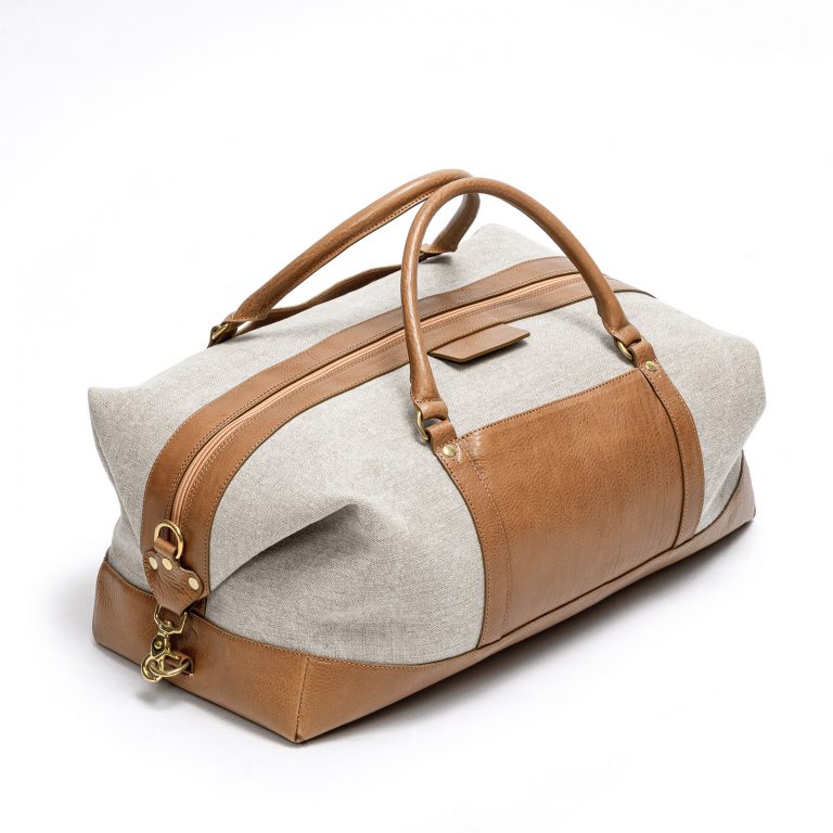 Ein stilsicherer Klassiker für kurze Reisen oder den Wochenendtrip. Aus Portugal in Handarbeit nachhaltig und exklusiv gefertigt besteht er aus erstklassigem Leder, einem hochwertigen Baumwoll- oder Leinen Canvas, der in acht Farben erhältlich ist. Massive Messingbeschläge mit Anti-Rost-Ausrüstung, einem Zwei-Wege-Reißverschluss und einem Baumwollfutter. Verstellbarer Schultergurt und zwei Tragegurte aus Leder. Zwei Außentaschen – eine mit Reißverschluss und eine mit Nieten. Drei Innentaschen, auf einer Seite mit Reißverschluss auf der anderen Seite zwei Blasebalgtaschen.