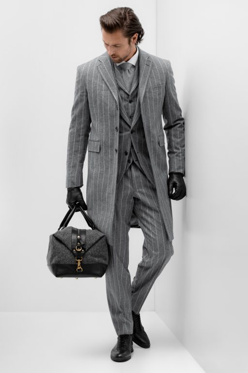 Trends: Anzug mit Weste nach Maß für einen souveränen Auftritt. Nadelstreifen oder feiner Glencheck auch wieder als Zweireiher aber modisch tailliert geschnitten. Schneiderkante am Revere, durchgeknöpfte Ärmelknöpfen und farbigen Innenfutter z.B. von „Lear Browns & Dunsford LTD. Futterstoffe für Sakko